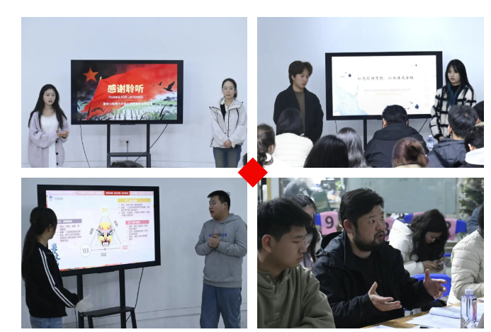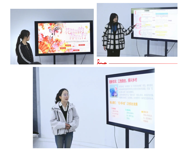 比赛现场,各参赛团队依次登台进行项目展示。选手们立足专业知识,将管理工具与创新思维紧密结合,通过精彩的PPT演示,全面阐述项目的创意构思、商业模式与发展前景。“冬韵传媒—荆楚遗韵踏浪出海” 团队聚焦荆楚非遗文化的国际化传播,探索文化输出的商业化路径;“花鼓新韵,青年力行” 团队以非遗数字化传承为使命,用新技术为传统花鼓戏注入青春活力;“红土地·阳新豚” 团队深耕红色沃土,以特色农产品为载体,探索乡村振兴与红色文化融合发展的新范式。三个项目各具特色,无不展现着同学们扎实的专业功底与敏锐的市场洞察力。