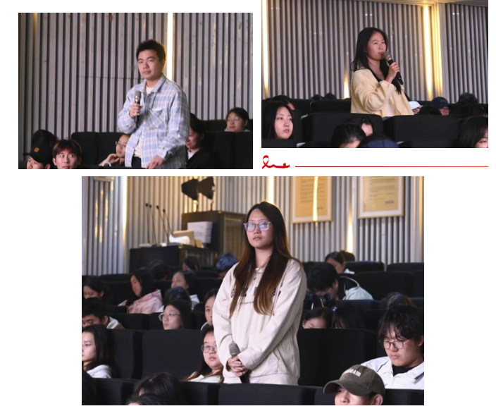 互动环节气氛活跃。来自文化产业管理2401班的蒋博文同学率先提问:“听了您的讲授,我的视野得到了极大拓展。我对联合研究生培养项目非常感兴趣,想了解具体如何报名录取?现阶段应朝哪些方向努力?”2024级电子商务专业的朱银娟同学问道:“在AI时代,如何避免自己的专业被淘汰?”2024级文化产业管理专业的方叶同学就考研方向寻求建议。