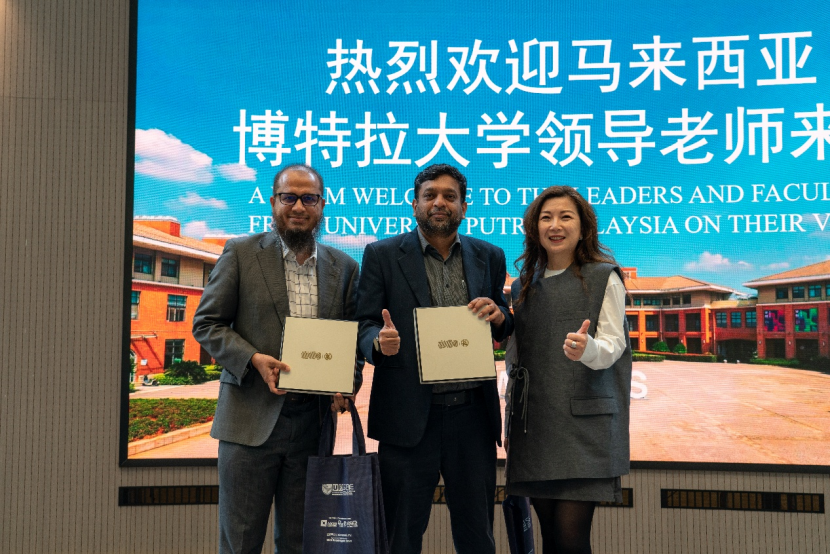 致辞结束后,我校领导与马来西亚博特拉大学代表团、厦门大学平潭研究院嘉宾举行纪念品互赠仪式。双方互赠具有校园文化特色的纪念品,传递友好合作的诚挚心意,象征两校友谊长存、合作共赢。
