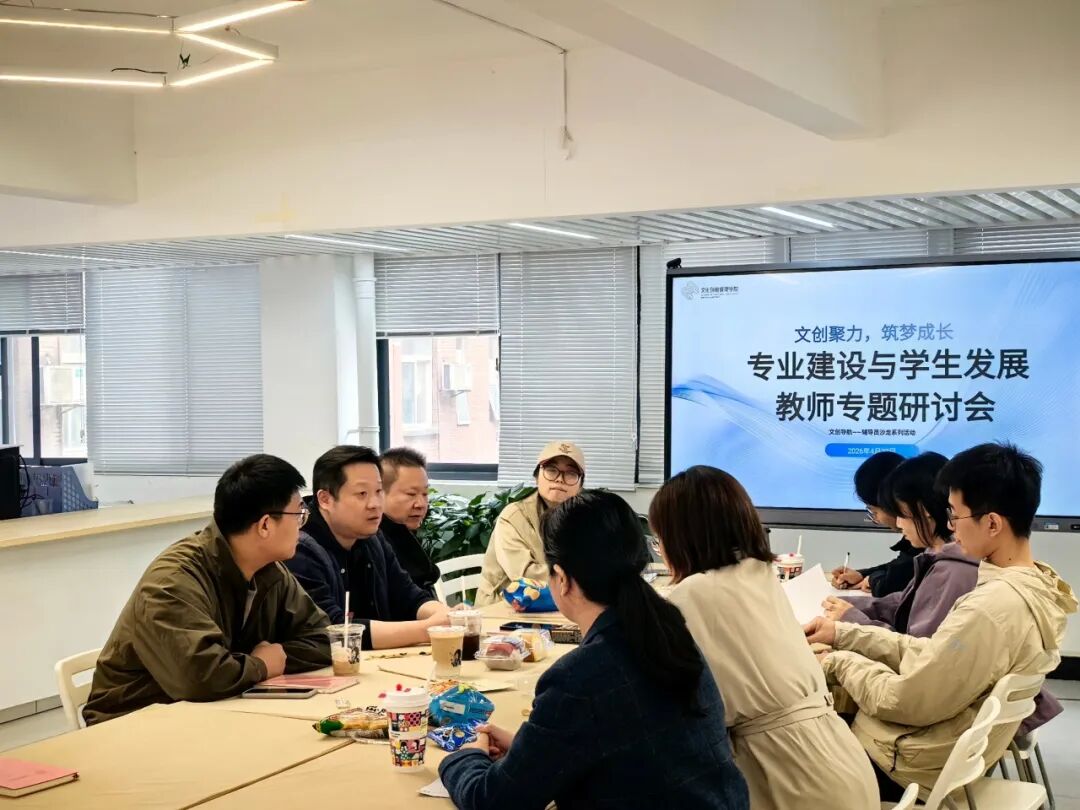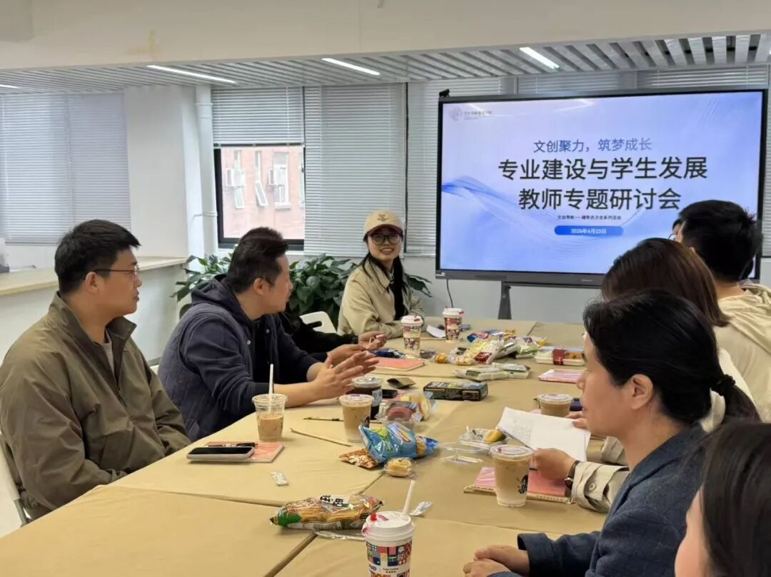 为进一步推动文化产业管理专业的建设与发展,聚焦学生成长与就业前景,2026年4月23日中午,一场以“文创聚力,筑梦成长”为主题的教师专题研讨会在九号楼“一站式”学生社区成功举办。本次活动由学生工作负责人刘茜老师主持,学院副院长祁峰及文化产业管理专业全体专任教师共同参与。