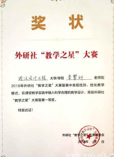 本网讯(通讯员 公共英语教研室)近日,2018年外研社全国高等学校大学英语教学发展与创新研修班暨“教学之星”大赛在成都落下帷幕。此次大赛邀请了全国二十多个省市自治区的高校教师参加,我校公共英语教研室教师李攀科也应邀参加了此次大赛,且荣获了此次大赛的复赛一等奖。