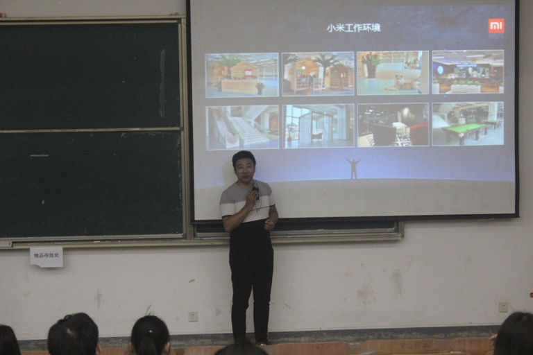 招聘宣讲会上郭老师详细介绍了小米通讯技术有限公司的小米网等业务部门、互娱部门、生态链部门、智能家居部门等的具体情况和未来发展方向,围绕“做未知世界的开拓者”这一主题阐明小米初心的内涵,并且展望了小米公司的未来发展。