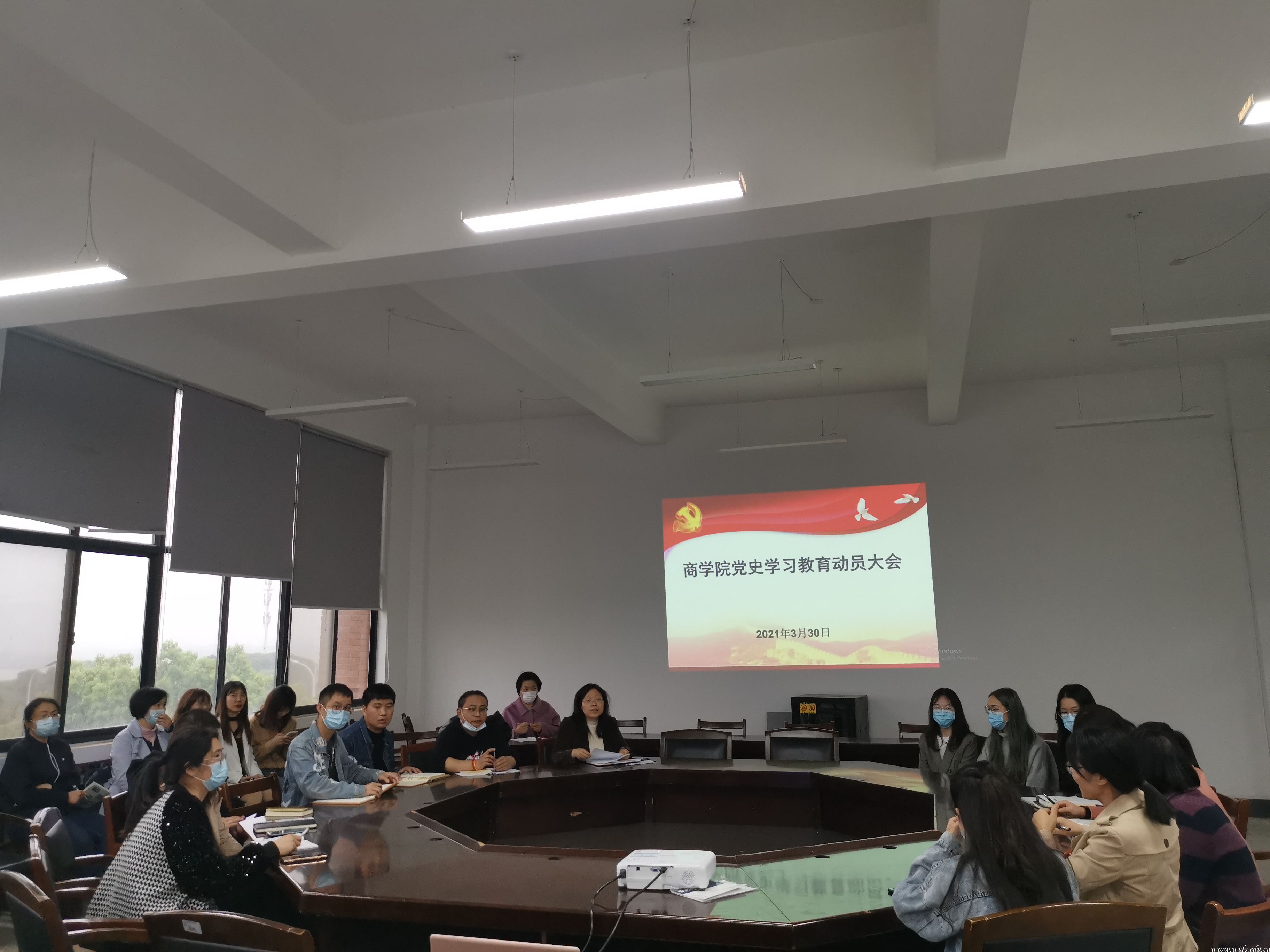 本网讯(通讯员 杜宇)3月30日下午,商学院在临湖轩三楼会议室召开党史学习教育动员大会,部署学院党史学习教育工作。会议由学院党总支副书记胡紫玲主持,全体教职工党员和学生党员代表参会。