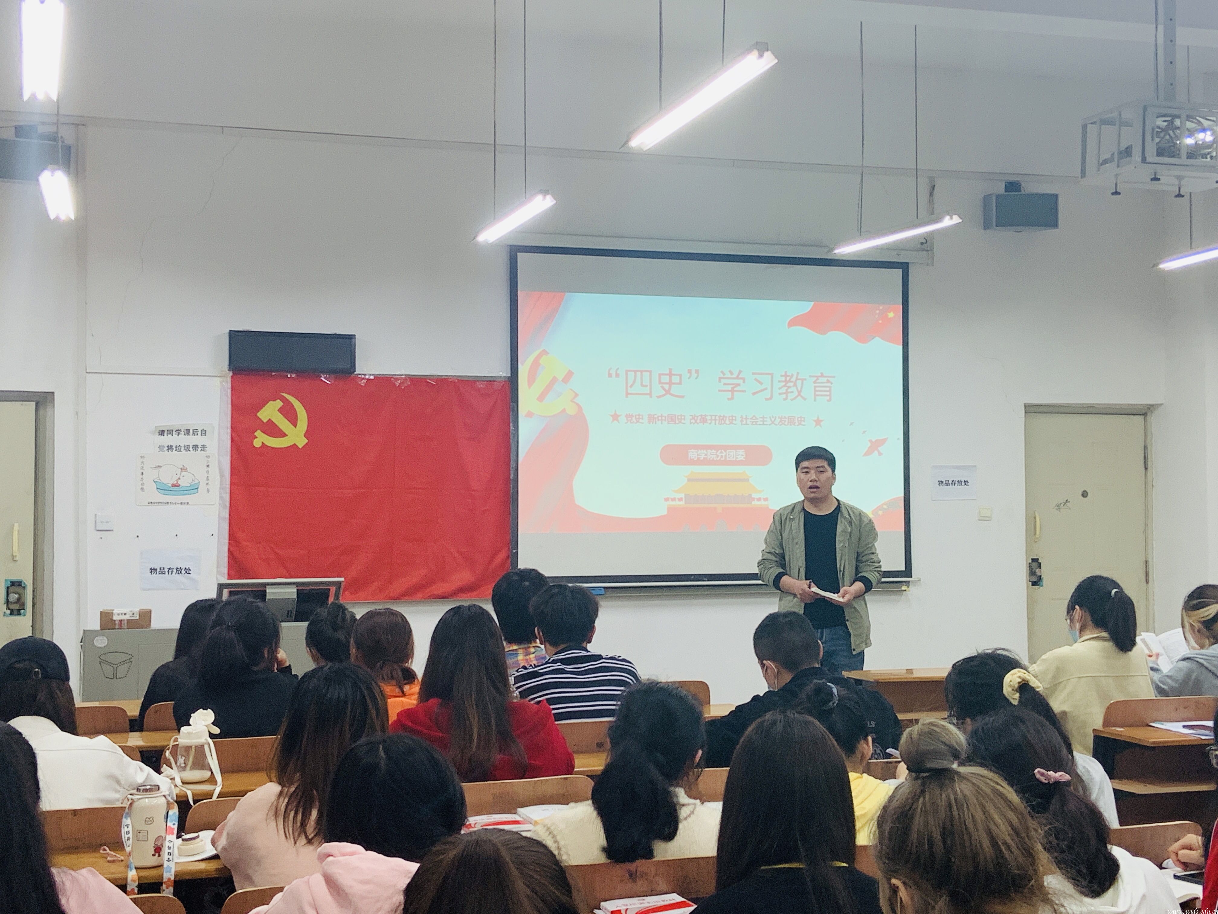 本网讯 (通讯员 张瑞彤)2021年是中国共产党成立100周年。为深入学习贯彻习近平新时代中国特色社会主义思想,响应党中央关于党史学习教育号召,从党的百年伟大奋斗历程中汲取智慧和力量,引导广大青年大学生爱国、爱党、明理、崇德、力行。按照学院党总支部署,4月6日19:00于临湖轩B2019教室,商学院分团委组织 “四史”主题学习教育,分团委学生会主要学生干部、各团支部代表参加了主题学习教育由分团委书记陈维同志主持。