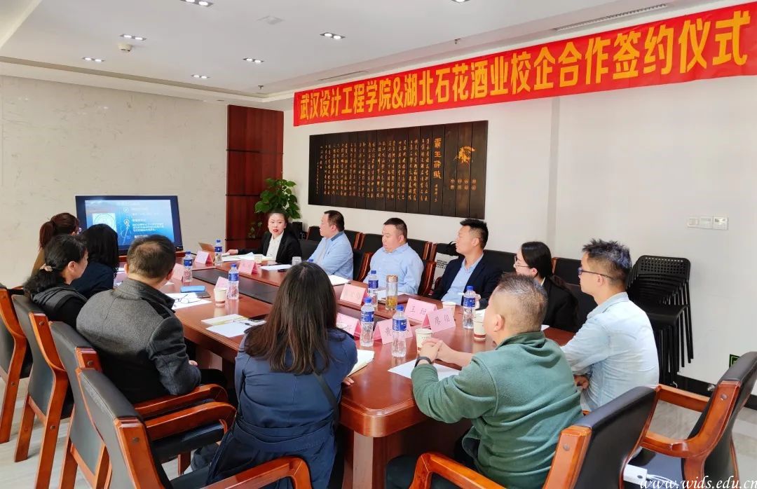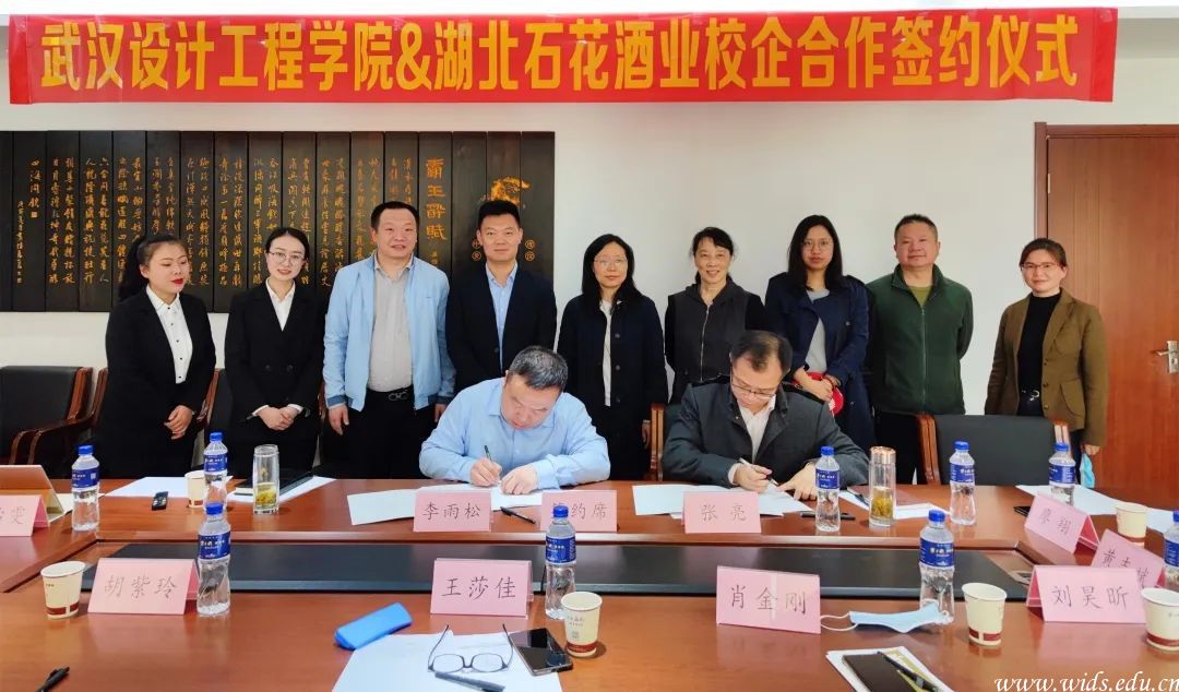 本网讯(通讯员 廖翔) 4月27日,我院与湖北知名企业——石花酒业校企合作项目在石花酒业武汉运营中心成功签约。学校招生就业处副处长王莎佳、商学院党总支书记胡紫玲、副院长张亮及教师代表与石花酒业营管总部副总经理李雨松、武汉大区总监肖金刚、企业管理总部副部长杜斌、人力资源部副经理王怡雯等出席了签约仪式。
