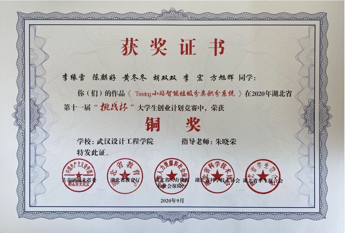 李缘雪等获湖北省 “挑战杯”大学生创新创业竞赛铜奖