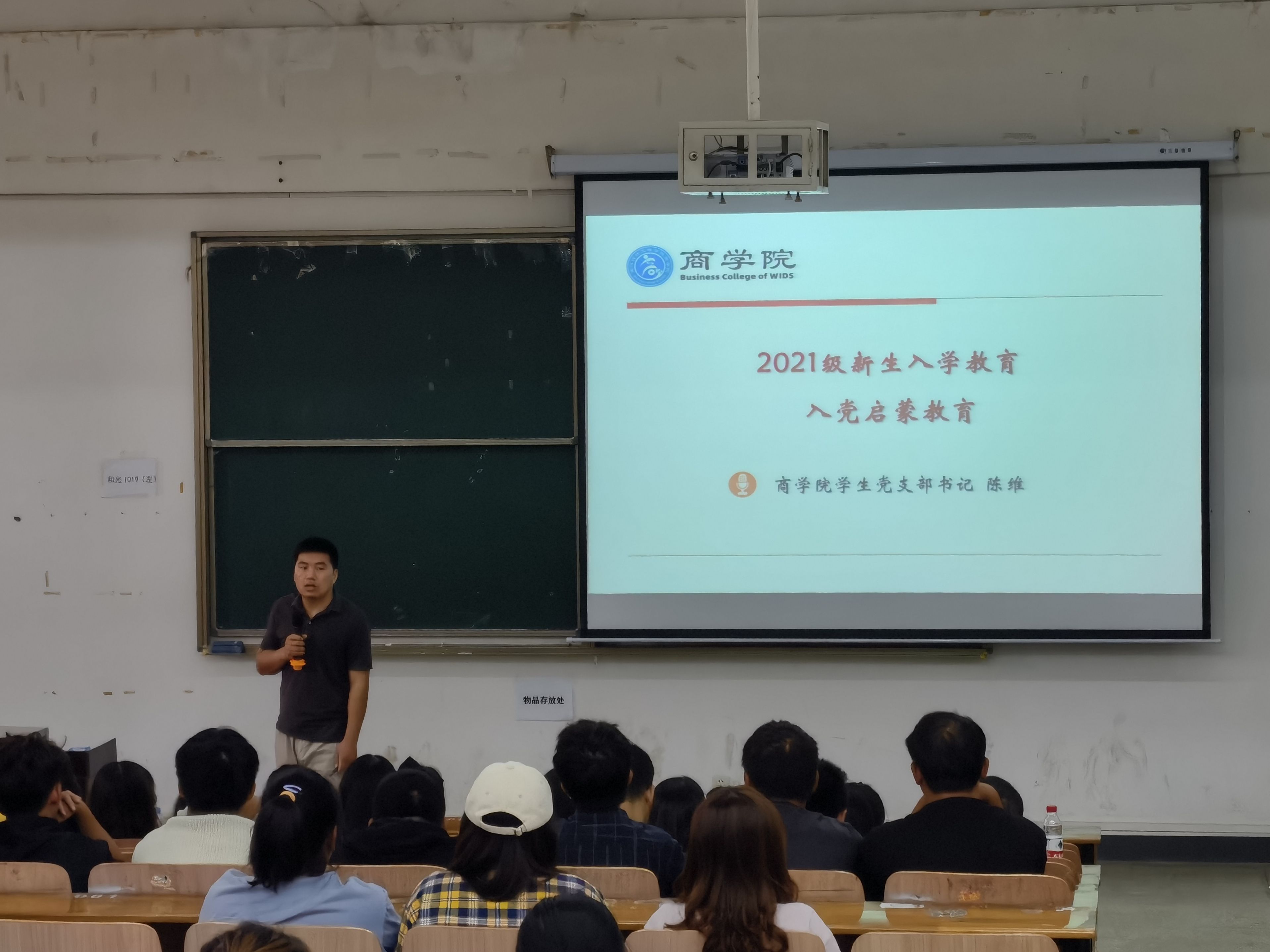 商学院学生党支部书记陈维同志为新生作入党启蒙教育