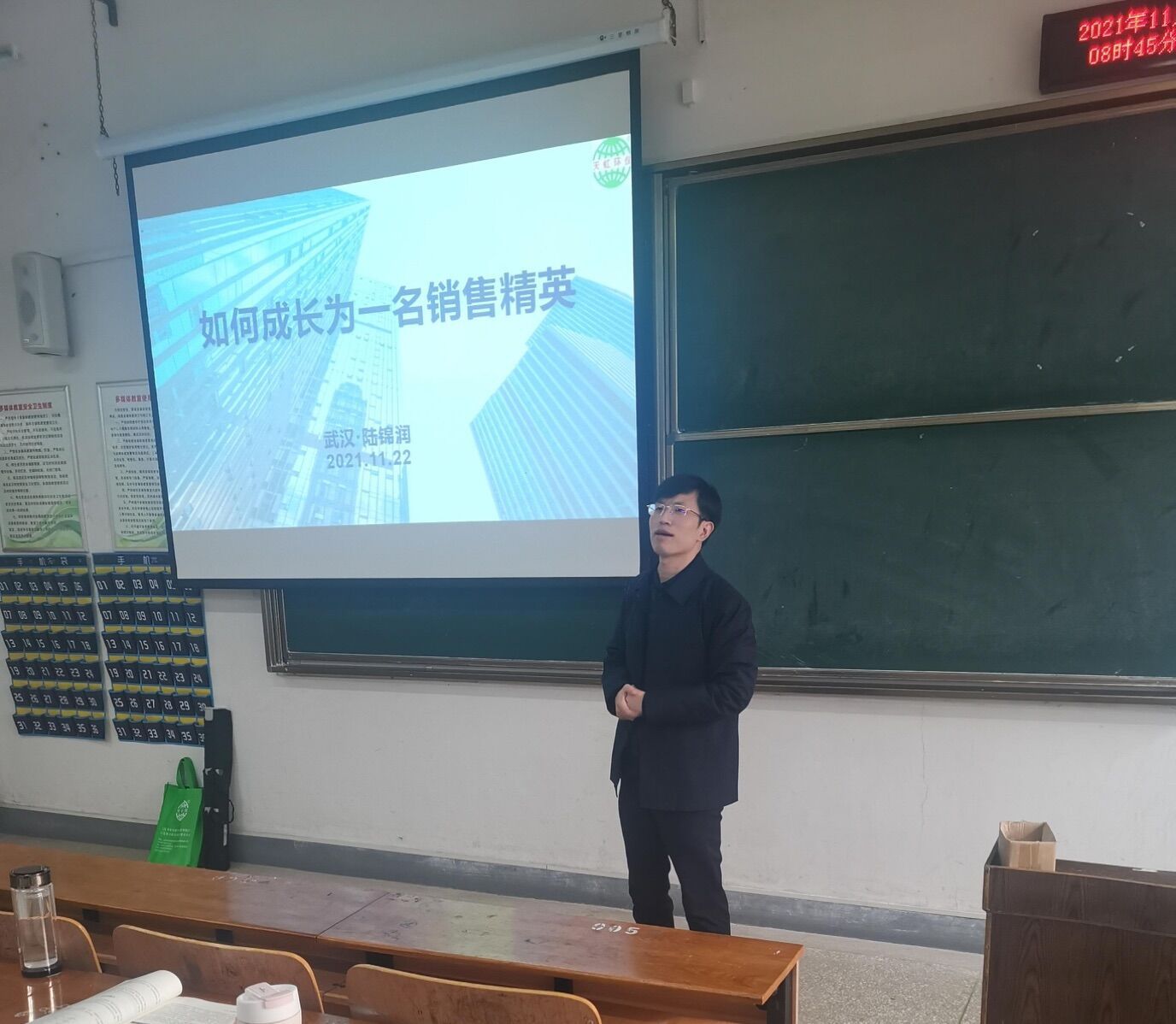 (通讯员 孙严育)2021年11月22日上午 ,我院市场营销专业邀请武汉天虹环保产业股份有限公司副总经理、销售总监陆锦润先生为我院19级、20级和21级市场营销专业学生,以及经管系全体教师在临湖轩B1039开展了一场有关“如何成为一名销售精英”的讲座。