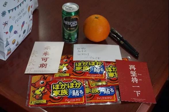 此次的考研能量加油包,物资齐全,贴心温暖:暖宝宝贴,希望在寒冷的冬天给吹着湖风的你们带来丝丝温暖;咖啡,希望大家可以抵御困意,抗争到底;水性笔,希望为大家的努力添上浓墨重彩的一笔;橙子,寓意心想事“橙”,“橙”功上岸;考研贺卡,辅导员亲笔写下的祝福,为每一位考研学子助力!加油!