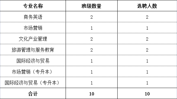 2022级四年制本科学长班主任面向2020级学生选聘,专升本专业的学长班主任面向2021级专升本学生选聘。选聘人数如下: